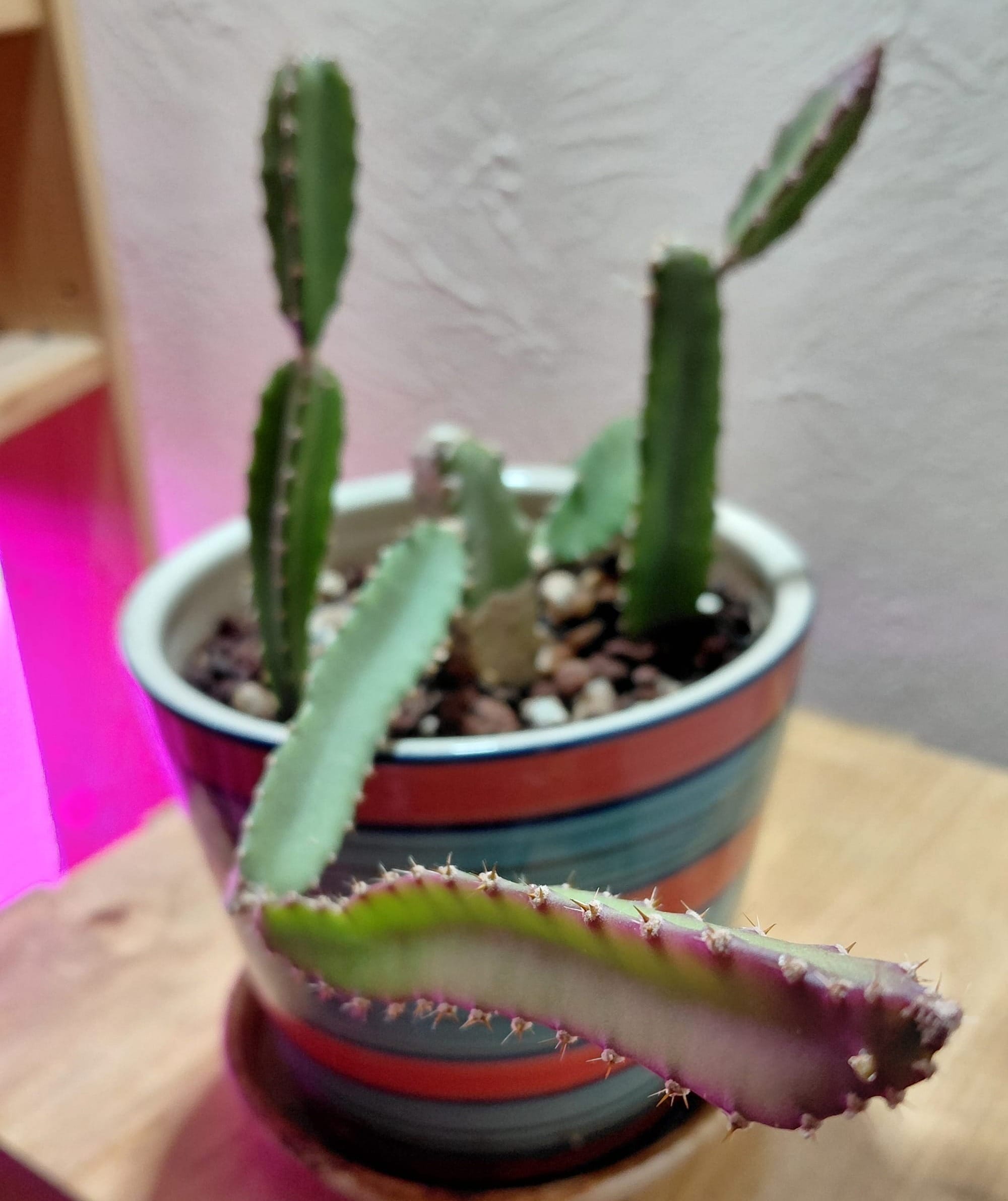 I was first introduced to dragon fruit not at a garden center or grocery store, but at an estate sale: it was an old mid-mod house in the Denver suburbs, whose owners must have been downsizing because the property was still well-maintained. Despite the markup none of their items fell in my price range (I had no job, remember), but I was more there to peruse and – inkeeping with my generation – fantasize about homeownership. In the east-facing kitchen window they had a little cluster of cacti: deep-green forest cacti, whose triangular arms spilled out from their confines onto the linoleum countertop. It didn't seem to be for sale – no price tag to speak of – but the owners were long gone and the liquidators would likely end up throwing it away, what harm was there in taking a pad or two? This was how I justified it to myself – I'm not proud of it, but I'd do it again in a heartbeat.