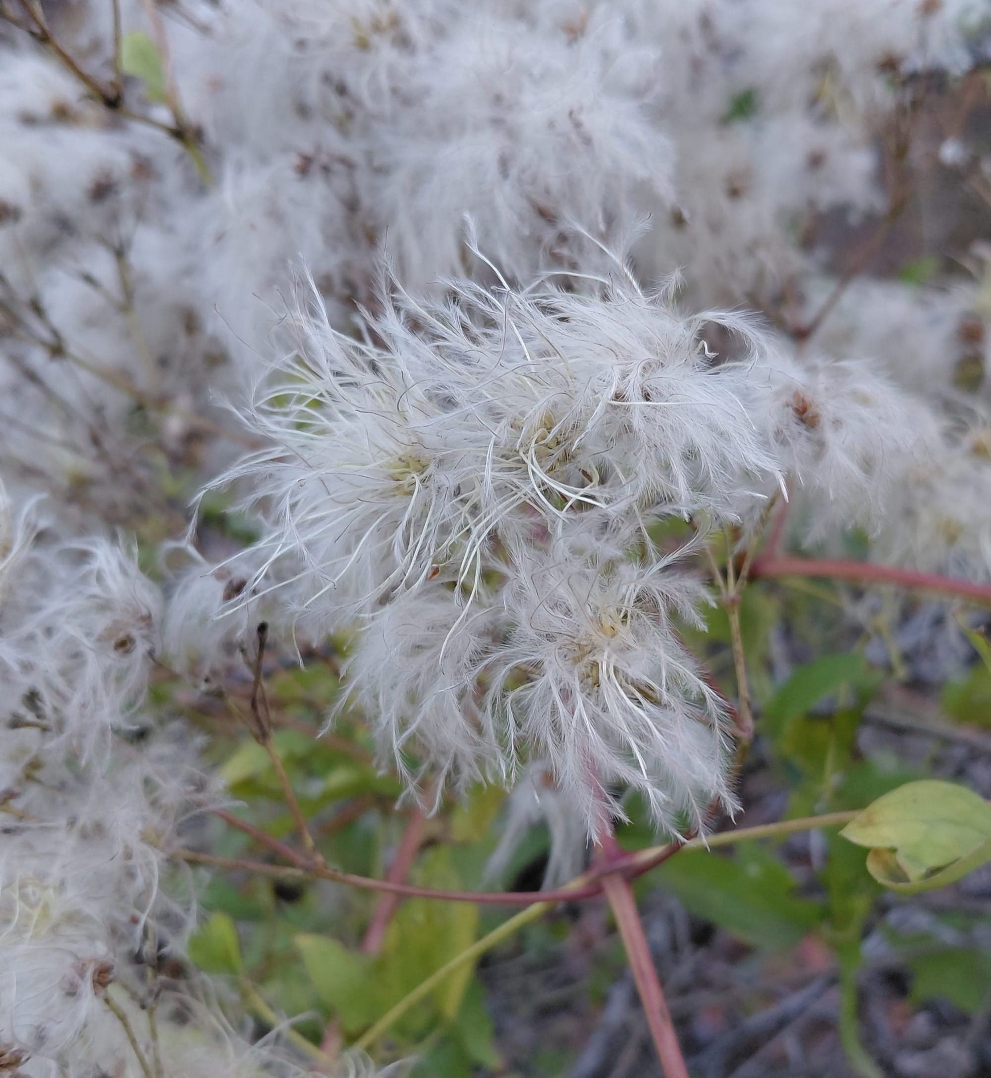 Boasting the widest range of the species we've discussed today, the Western White Clematis can be found all across the Western United States, with populations extending north into Canada and south into Mexico. This species is dioecious (a trait it appears to share with C. occidentalis, but not necessarily with our other Clematis species) and blooms in profuse clustered infloresences. One of the many common names for this plant – "old man's beard" – refers to its showy infructescense. All clematis flowers (to my knowledge) develop into follicular achenes when pollinated, but with C. ligusticifolia's floral density these structures give the plant a floccose appearance that lasts well into winter dormancy.